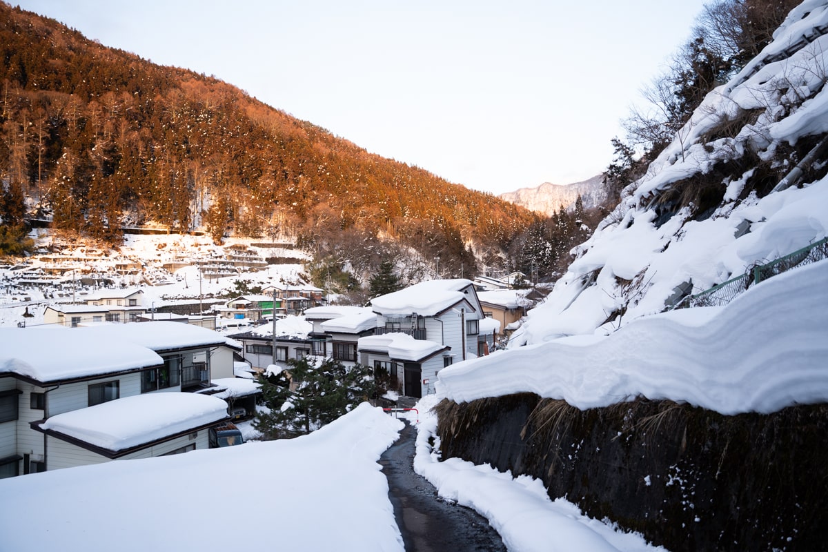 Nozawa is a popular hot spring village located 1.5 hours from Nagano City in northeast Nagano with quintessential Japanese onsen village vibes: public (free) baths, narrow streets, and a lively après-ski scene.