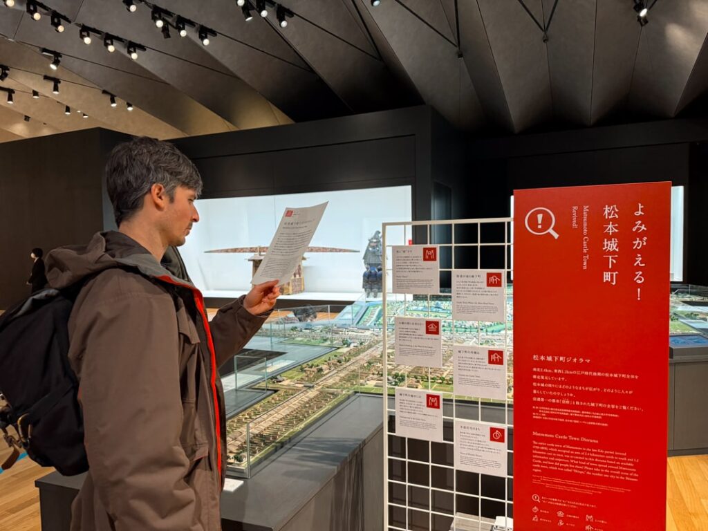While the second floor features temporary exhibits, the third floor houses the permanent exhibition, which traces Matsumoto’s evolution as a castle town—from the Edo period through Meiji modernization to the present day—alongside displays on local culture, traditional crafts, and the surrounding mountains.