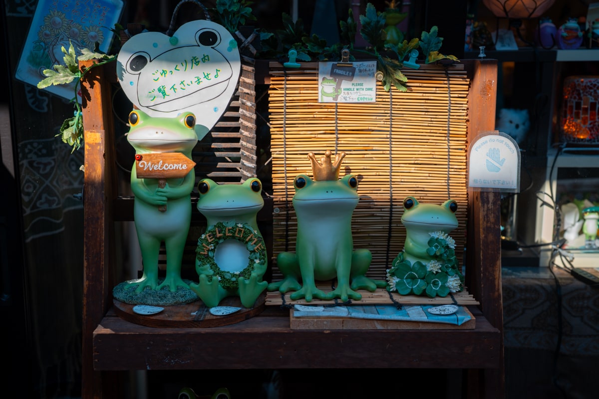 The second, more well-known street is Nawate Street, nicknamed “Frog Street” (as indicated by the giant frog statues). You’ll find it just across the Metoba River. Nawate Street feels more charming as there are no cars allowed.