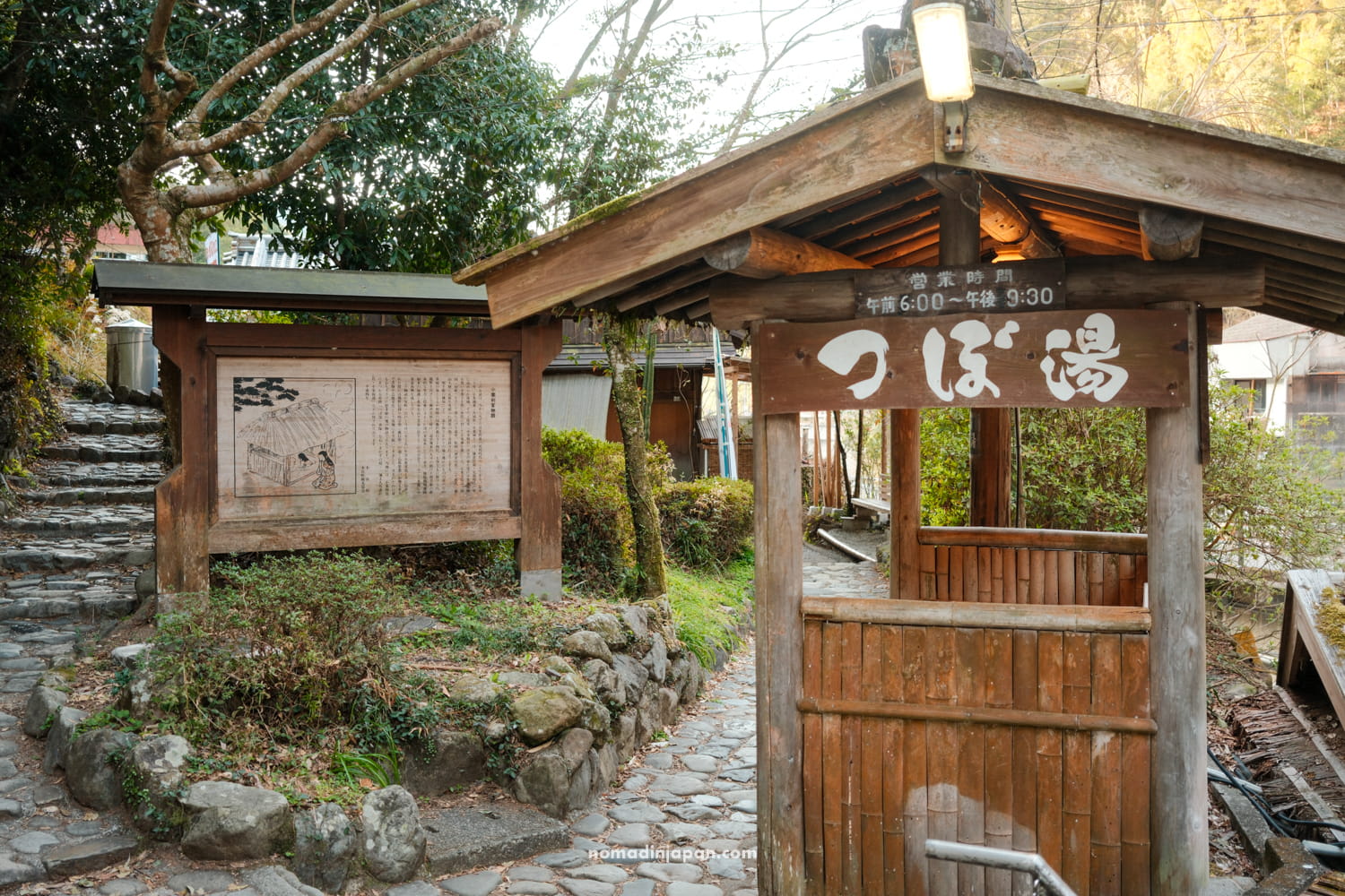 The reception for Tsuboyu hot spring opens early (6:00 AM) and accepts bookings up until ~8:30. It closes at 9:00 pm.