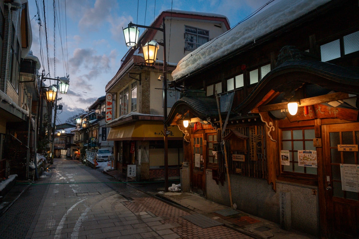 This charming and historic hot spring town, situated 30 minutes from Shiga Kogen by bus or car, has adorable streets lined with historic ryokans, steaming public baths, and a retro vibe.